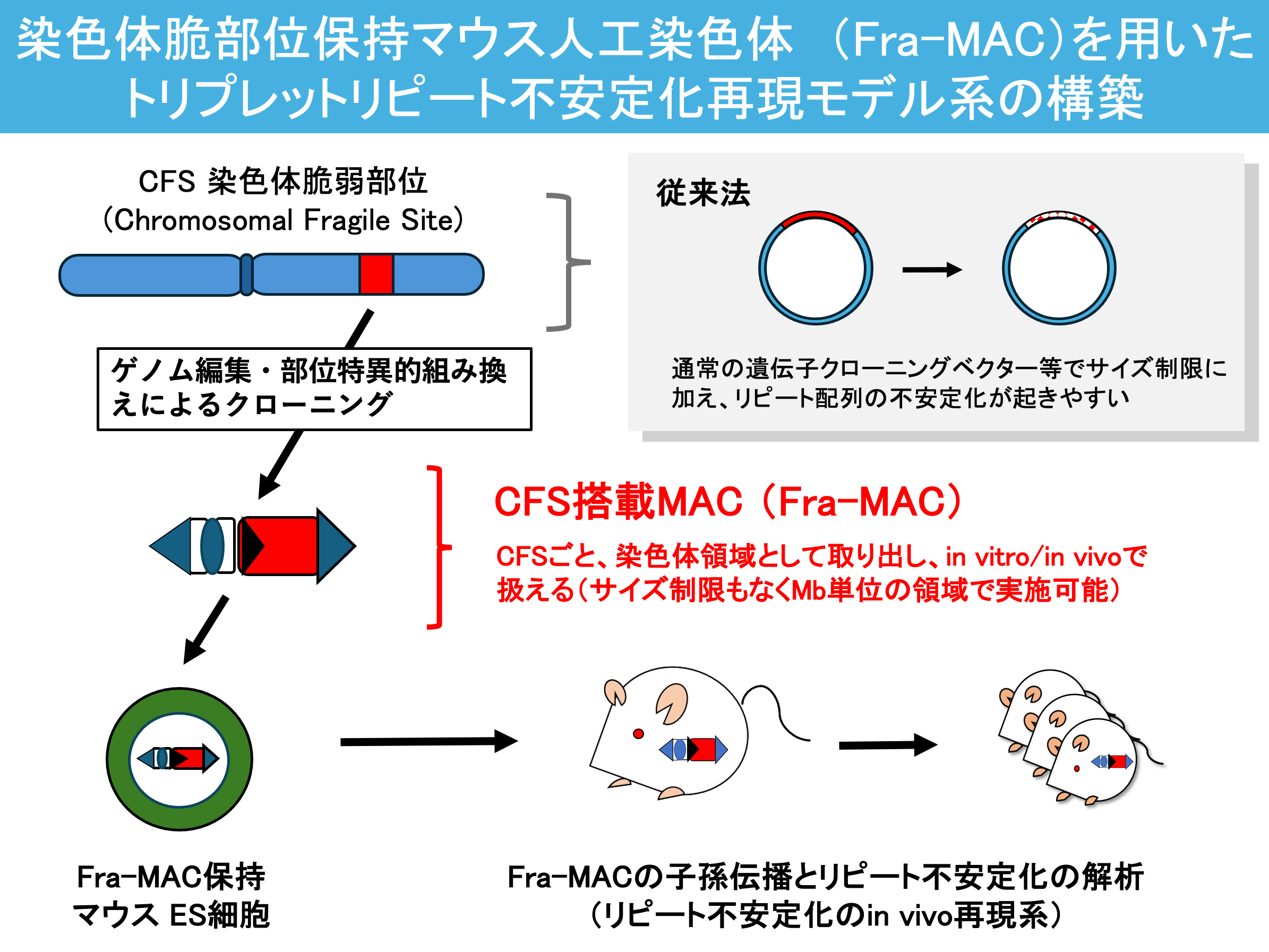 この研究はまた、安定に染色体脆弱部位を取り扱う操作技術の確立でもあり、