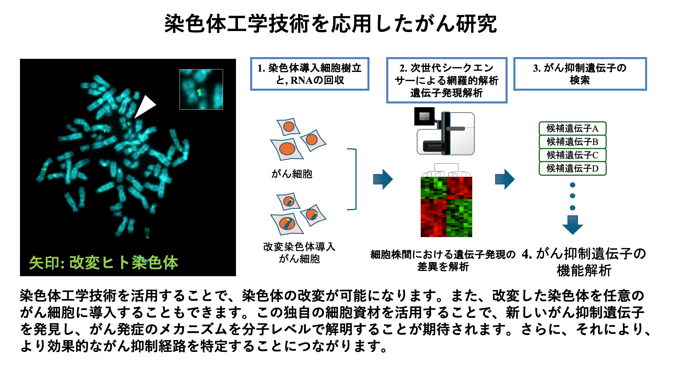 正常なヒト染色体および改変染色体をがん細胞株に導入するという独自の研究手法を用い、