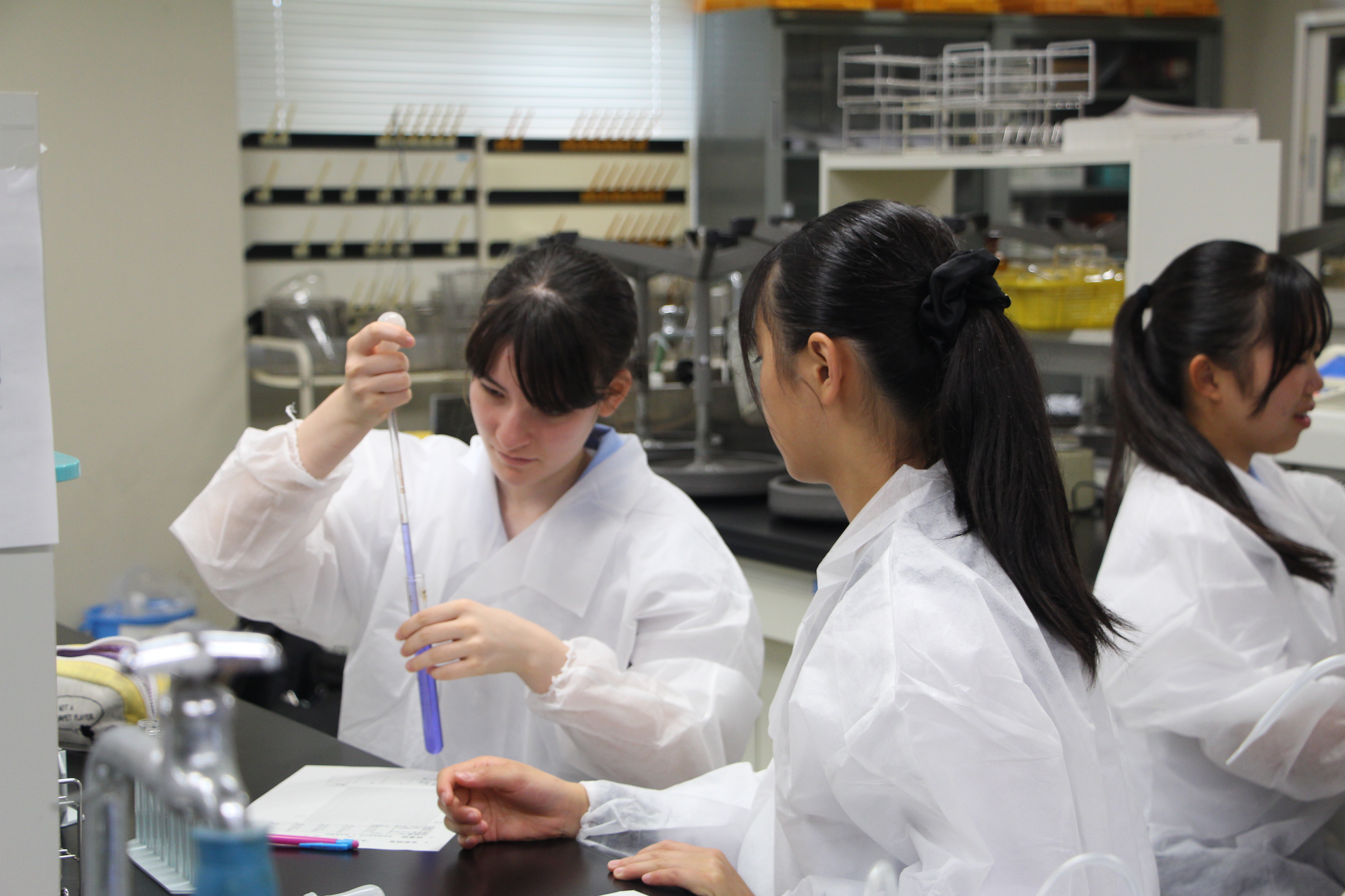 参加者は自身で興味のあるコースを選択し、少人数のチームに分かれて、実験・実習の体験や先端機器設備の見学等を行いました。体験実習で初めて扱う機器に戸惑う場面も見受けられましたが、ノートを取りながら真剣に話を聞き、積極的に研修に取り組んでいました。また、時折見せる笑顔から、これらの研修が充実した時間となっていることを感じました。