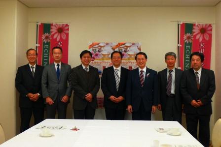 | 県知事報告の様子 | 左から2番目 竹内准教授、左から3番目景山教授 |