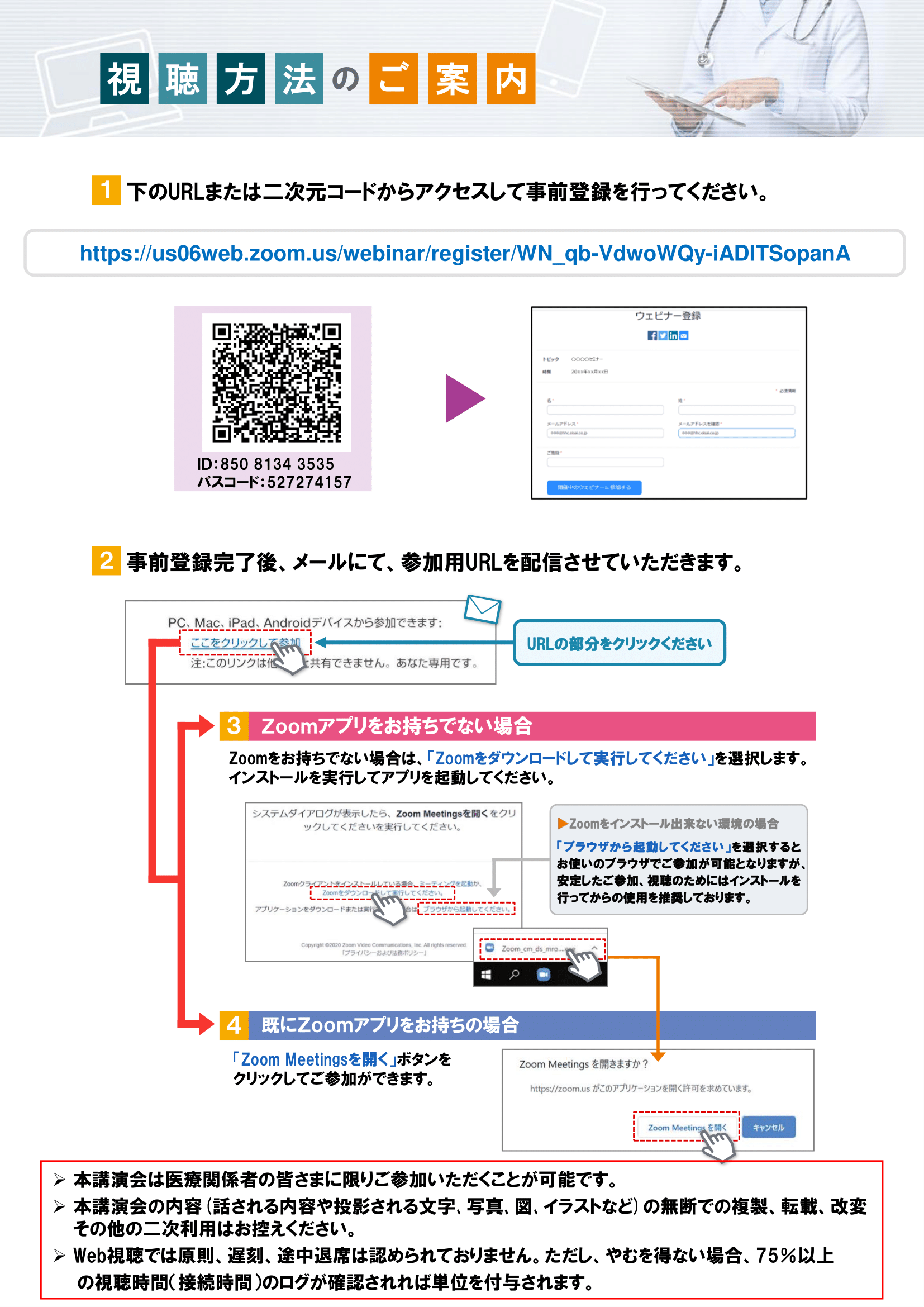 Zoomでの視聴方法は以下をご確認いただけましたら幸いです。