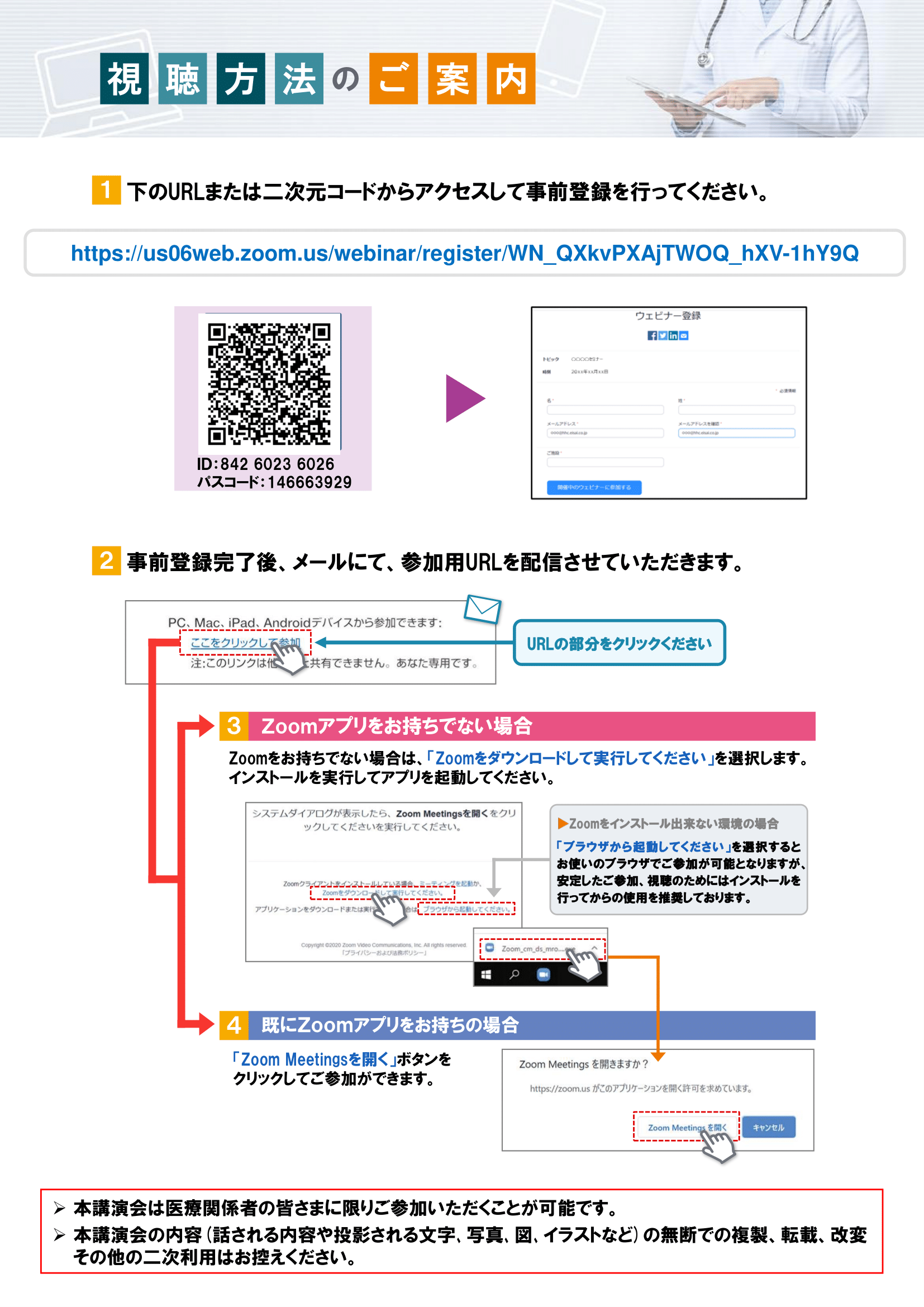 Zoomでの視聴方法は裏面をご確認いただけましたら幸いです。