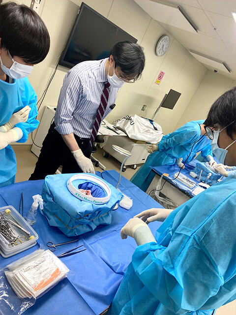 関連病院の若手医師と学生7名を加え、第9回 山陰弁膜症勉強会を開催しました。 この度は慶應義塾大学医学部 外科学(心臓血管)教授 志水秀行先生をお迎えし、弁膜症についてのご講演を賜りました。 講演後のブタ心臓を用いたウェットラボでは、和やかな雰囲気の中、手術手技トレーニングを行いました。