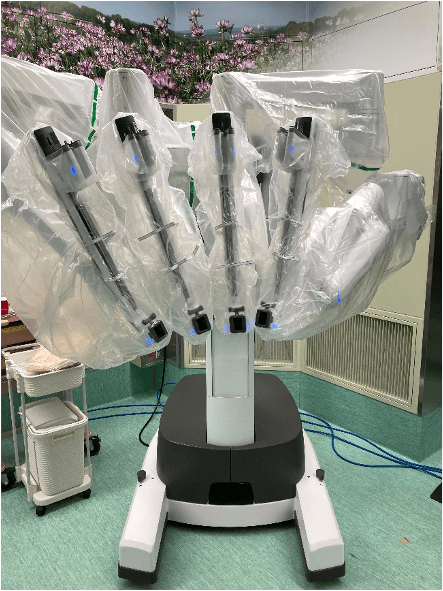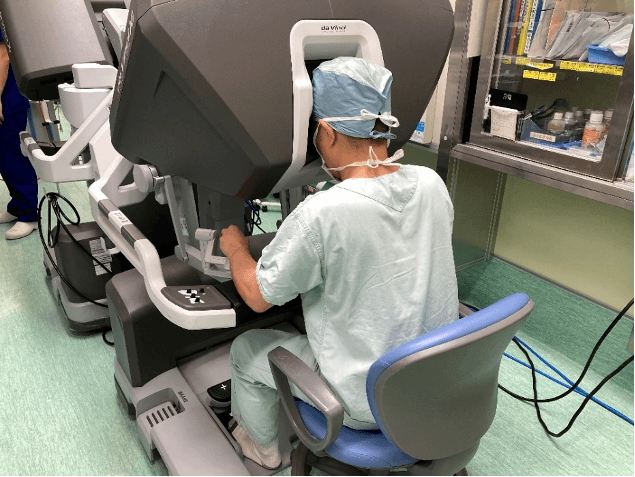 ロボット支援下手術は、daVinciサージカルシステムという手術支援ロボットを用いて行います。自由度の高い操作性と拡大視野、3D画像による高い視認性が特徴であり、低侵襲かつ精緻な手術を確実に行うことが可能となります。